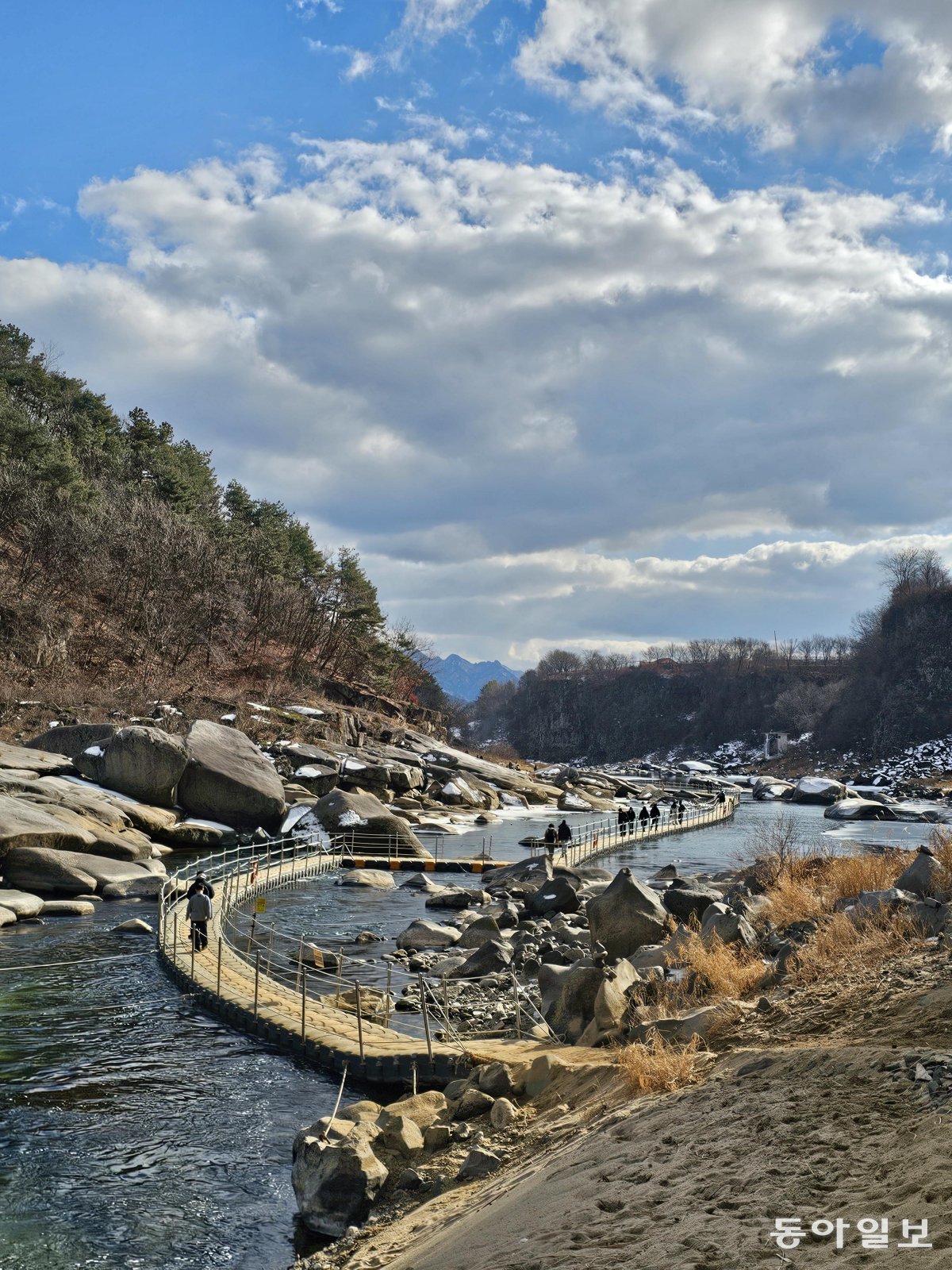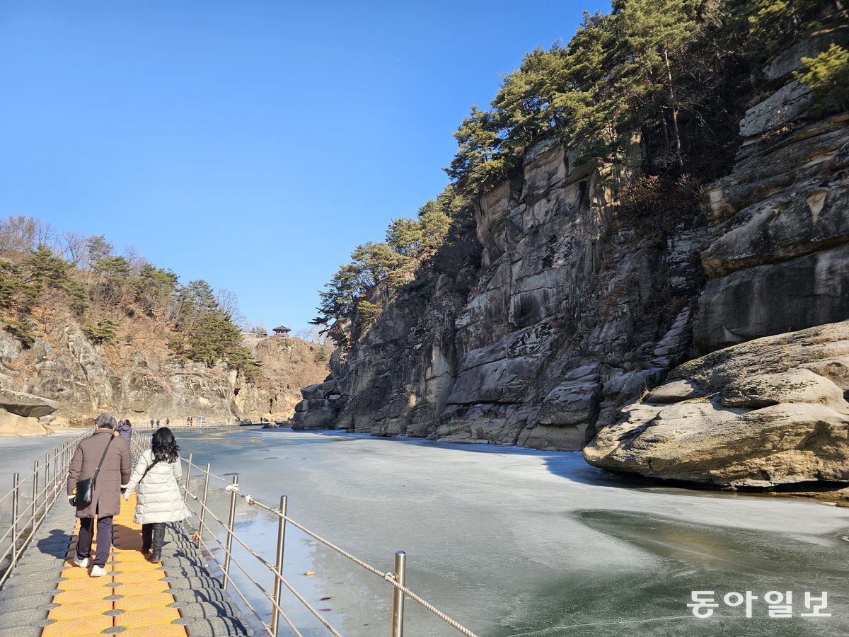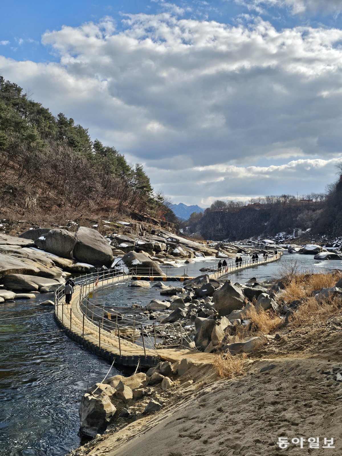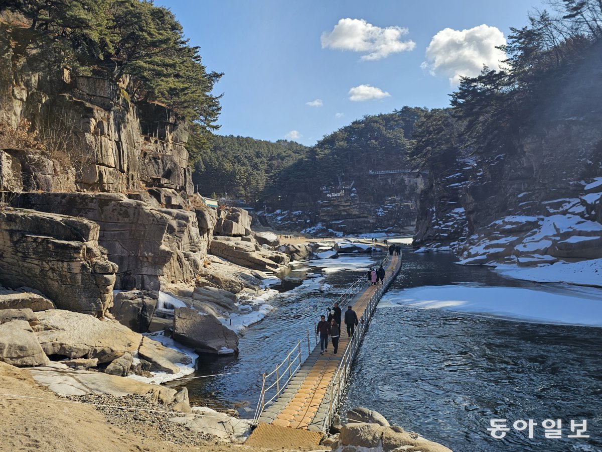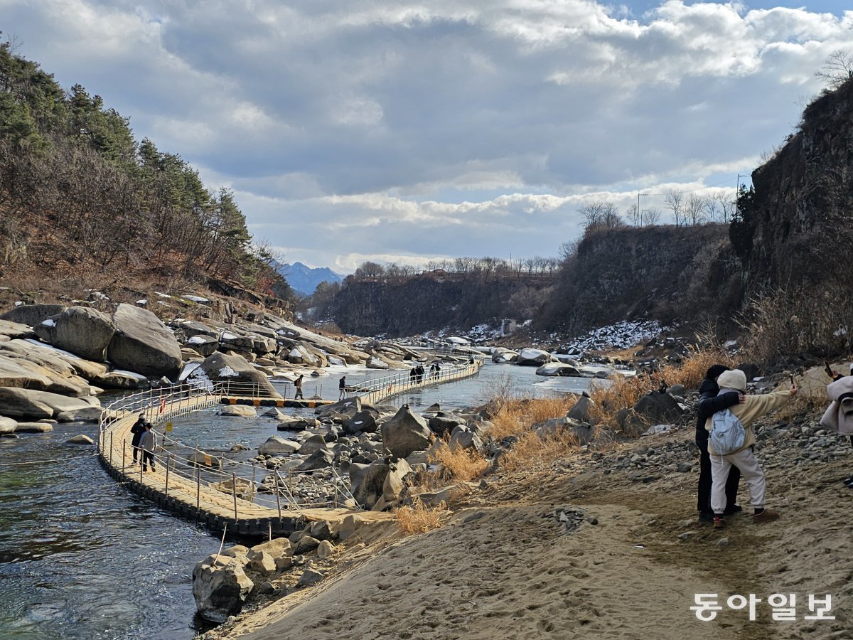 메인 후보 : 겨울에만 열리는 한탄강 물윗길. 철원군 직탕폭포에서 순담계곡까지 8.5km 구간의 한탄강 협곡을 부교를 따라 걸으며 주상절리를 감상할 수 있다.