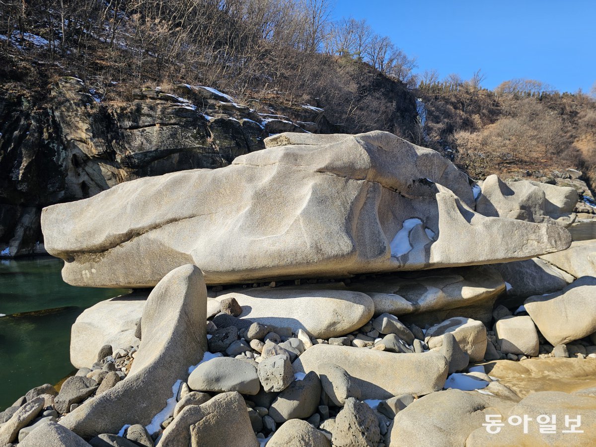 고래와 물고기 모양의 화강암이 많은 순담계곡.계곡의 바위 밑에는 오리가 부지런히 자맥질을 하며 먹이를 찾는다. 주변 나뭇가지를 보니 솜털이 보슬보슬한 새순이 달려 있다. 한탄강엔 아직 눈과 얼음이 가득한데, 봄의 기운은 막을 수 없나보다.