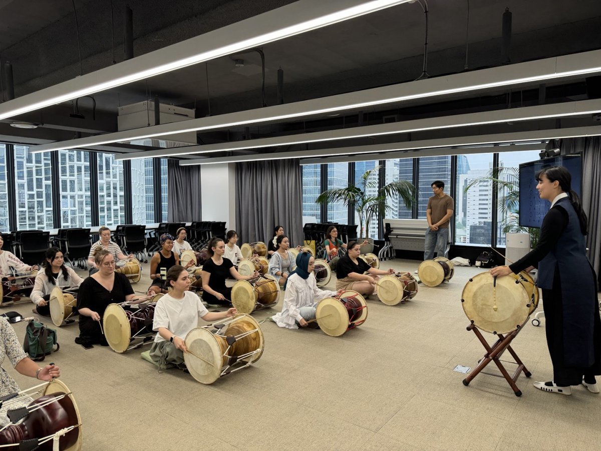 외국인 참여자들이 장구를 직접 연주하는 모습(서울관광재단 제공)최근 서울에 생긴 한류문화체험공간이 외국인 관광객들에게 큰 인기를 끌고 있다.