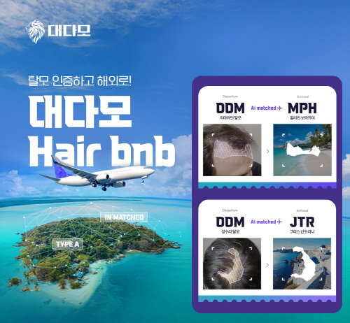 국내 최대 탈모 커뮤니티 대다모가 탈모 사진을 찍으면 해외여행 비용을 지원하는 ‘헤어비앤비’ 이벤트를 오픈했다고 밝혔다.