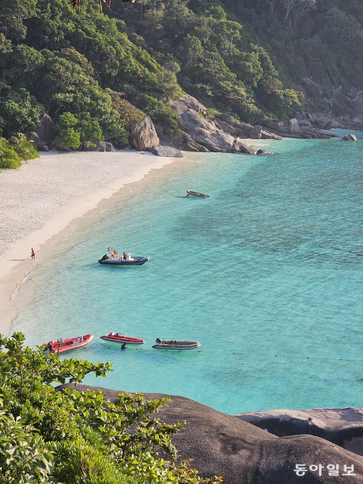 태국 남부 푸켓섬에서 미얀마 국경까지 이어지는 안다만해의 시밀란(Similan) 국립공원은 9개 섬으로 이뤄진 군도다. 시밀란은 말레이시아어로 숫자 ‘9’라는 뜻. 1982년 국립공원으로 지정된 시밀란 군도는 해양 생태계 보존을 위해 1년에 단 6개월(11월~4월) 건기철에만 관광객에게 개방한다. 그래서 200종 이상의 산호초가 자라며, 고래상어, 만타 가오리, 나폴레옹 피쉬 등 다양한 해양생물이 살고 있다. 푸켓은 신혼여행지로 유명한 섬이지만, 이번엔 시밀란 국립공원을 4박5일간 배를 타고 바닷 속 비경을 탐험하는 특별한 투어를 떠났다. 오로지 배 안에서만 먹과 자고 생활하며 다이빙하는 ‘리브어보드(liveaboard)’ 여행이다.
