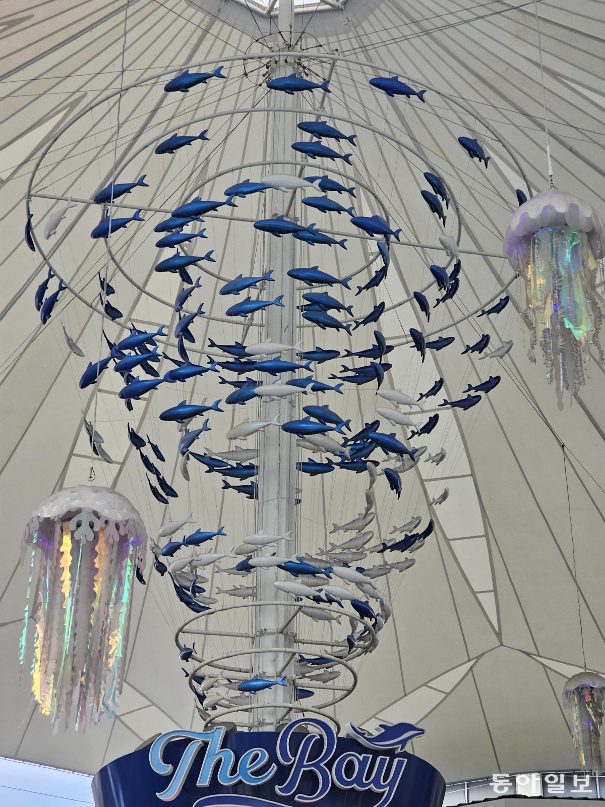 자이언트 트레발리의 스쿨링과 해파리를 형상화한 푸켓 파통해변 쇼핑몰의 조형물.