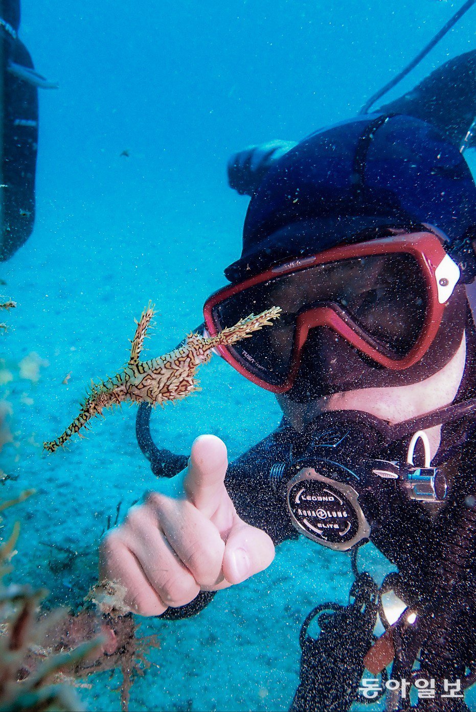 그런가 하면 산호초와 바위 절벽 속에서 총천연색의 연체동물인 민달팽이 ‘누디’, 나뭇가지를 닮은 물고기 ‘고스트 파이프 피쉬’, 작고 귀여운 해마, 랍스터와 만티스 새우를 찾는 것은 바닷 속에서 보물찾기를 하는 것과 같다.