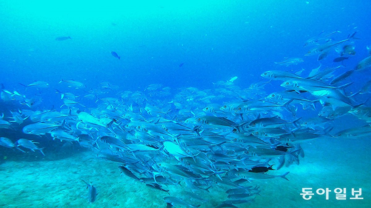 수십억만 마리의 치어떼부터 트럼펫 피쉬, 옐로 스내퍼 등 작은 물고기 뿐 아니라 참치, 바라쿠다, 자이언트 트레발리(GT), 고래상어, 만타가오리 등 대형 어류들이 갱단처럼 이리저리 몰려다니는 곳이다.