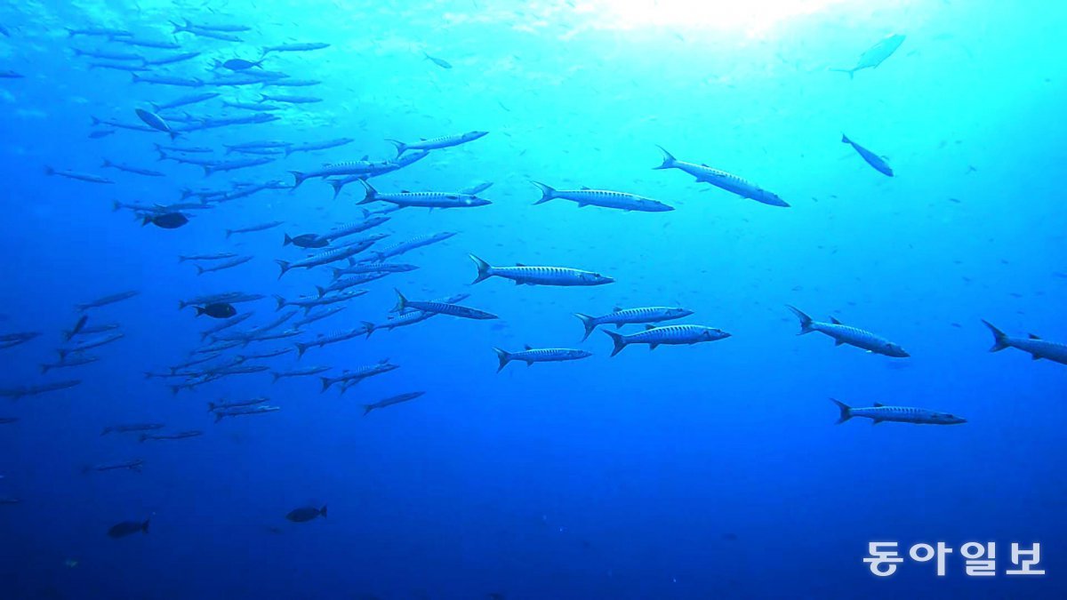 이번에는 머리 위로 바라쿠다가 떼를 지어 이동한다. 기다랗고 날씬한 몸통에는 세로로 얼룩덜룩한 줄무늬가 새겨져 있다. 어디론가 집단폭격을 위해 날아가고 있는 은빛 미사일부대같다. 미야자키 하야오 감독의 애니메이션 ‘미래소년 코난’에서 인더스트리아에서 온 배의 이름이 ‘바라쿠다 호’였다. 위풍당당한 포식자의 이미지 그대로였다.