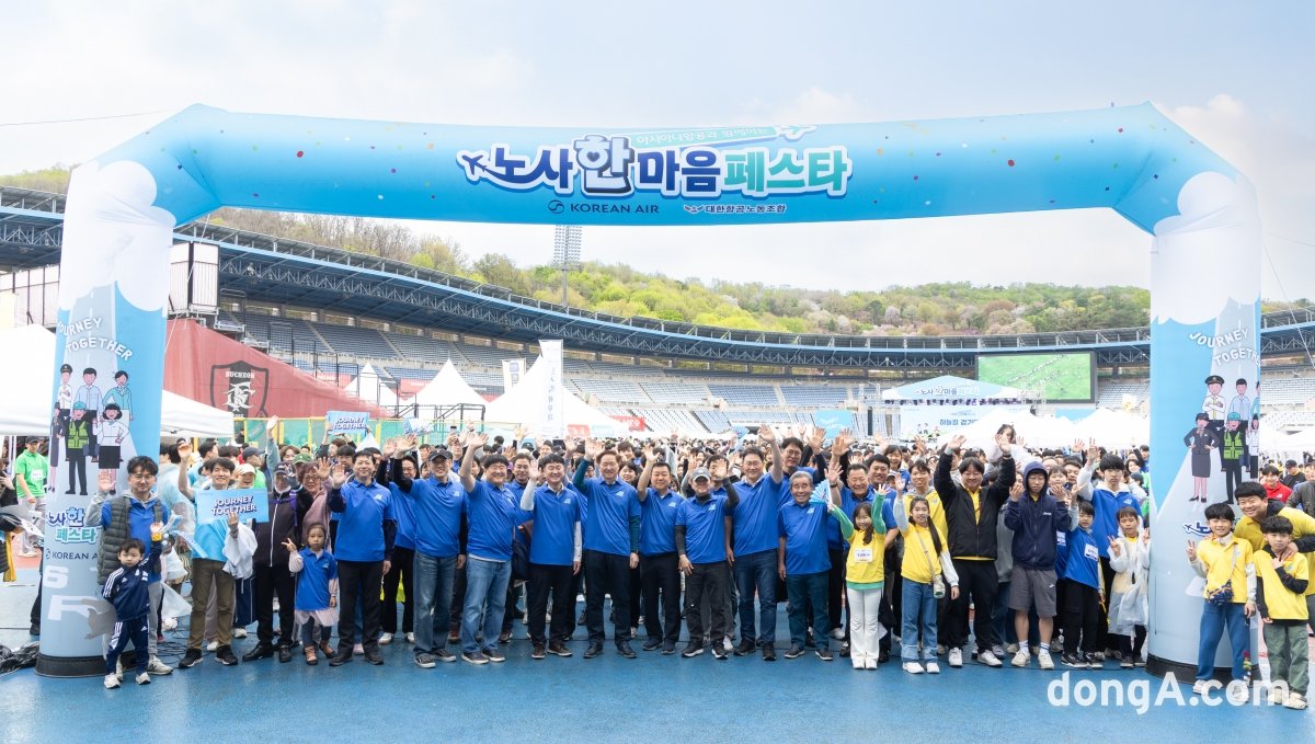 대한항공이 지난 19일 아시아나항공 임직원과 가족들이 참여한 가운데 노조 창립 61주년 기념행사인 한마음 페스타를 개최했다. 대한항공과 아시아나항공 임직원 및 가족들이 기념사진을 촬영하고 있다.대한항공은 19일 경기도 부천시 부천종합운동장에서 노조 창립 61주년을 기념하는 ‘한마음 페스타’를 개최했다. 행사에는 대한항공과 아시아나항공 임직원 및 가족 약 4000여명이 참여했다. 김동명 한국노동조합총연맹 위원장과 조용익 부천시장, 진성준 더불어민주당 국회의원 등은 내빈으로 참석했다.