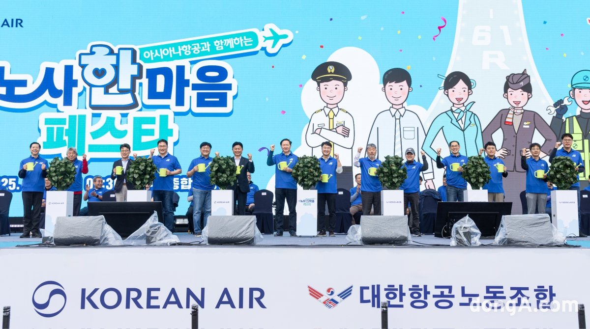대한항공은 19일 경기도 부천시 부천종합운동장에서 노조 창립 61주년을 기념하는 ‘한마음 페스타’를 개최했다. 행사에는 대한항공과 아시아나항공 임직원 및 가족 약 4000여명이 참여했다. 김동명 한국노동조합총연맹 위원장과 조용익 부천시장, 진성준 더불어민주당 국회의원 등은 내빈으로 참석했다.