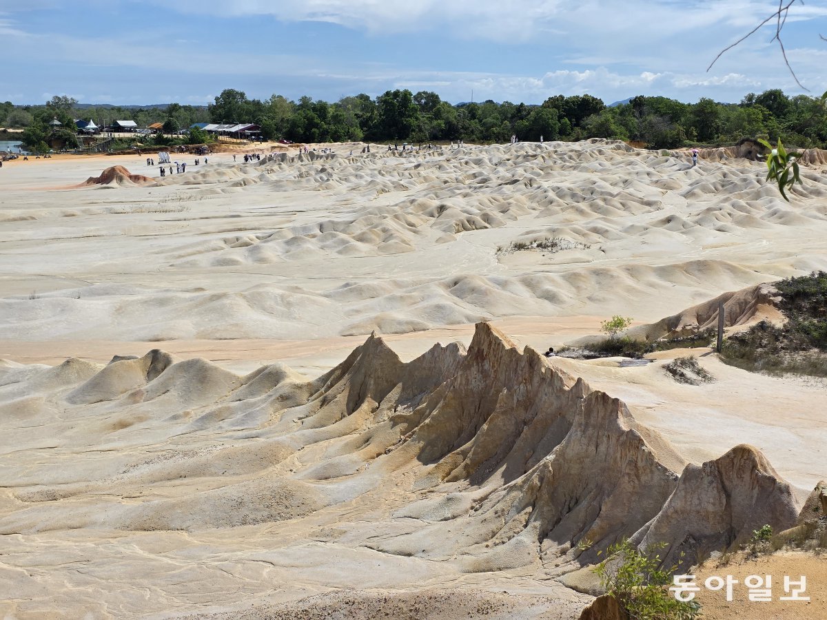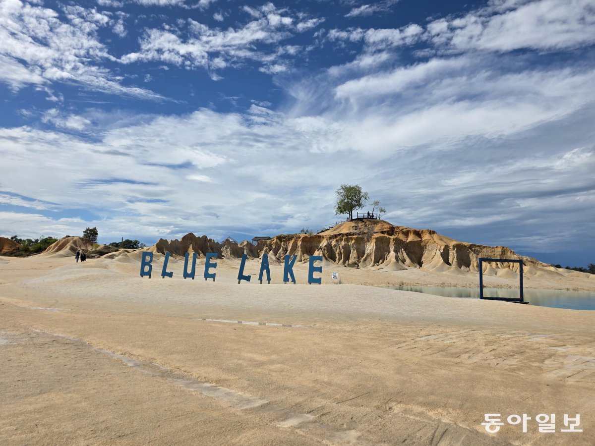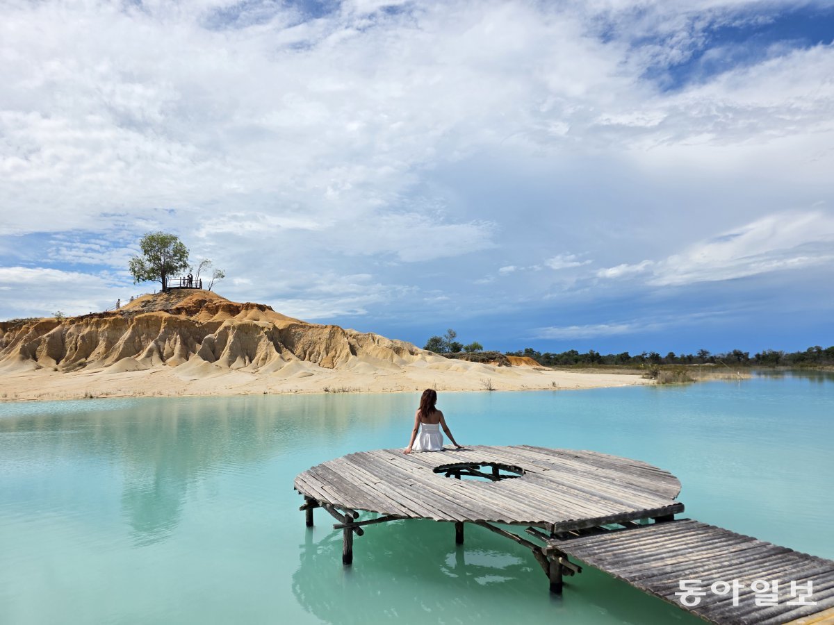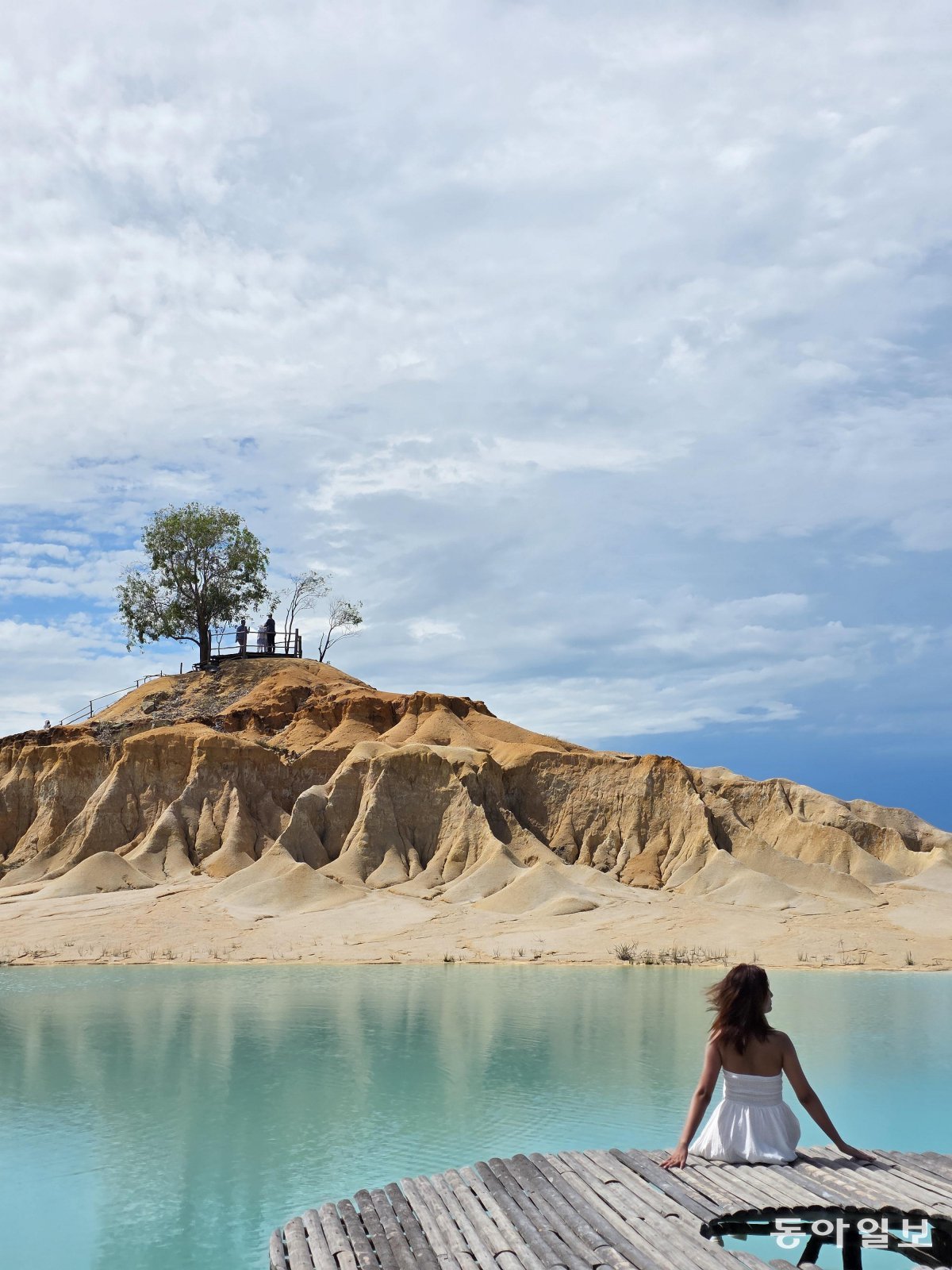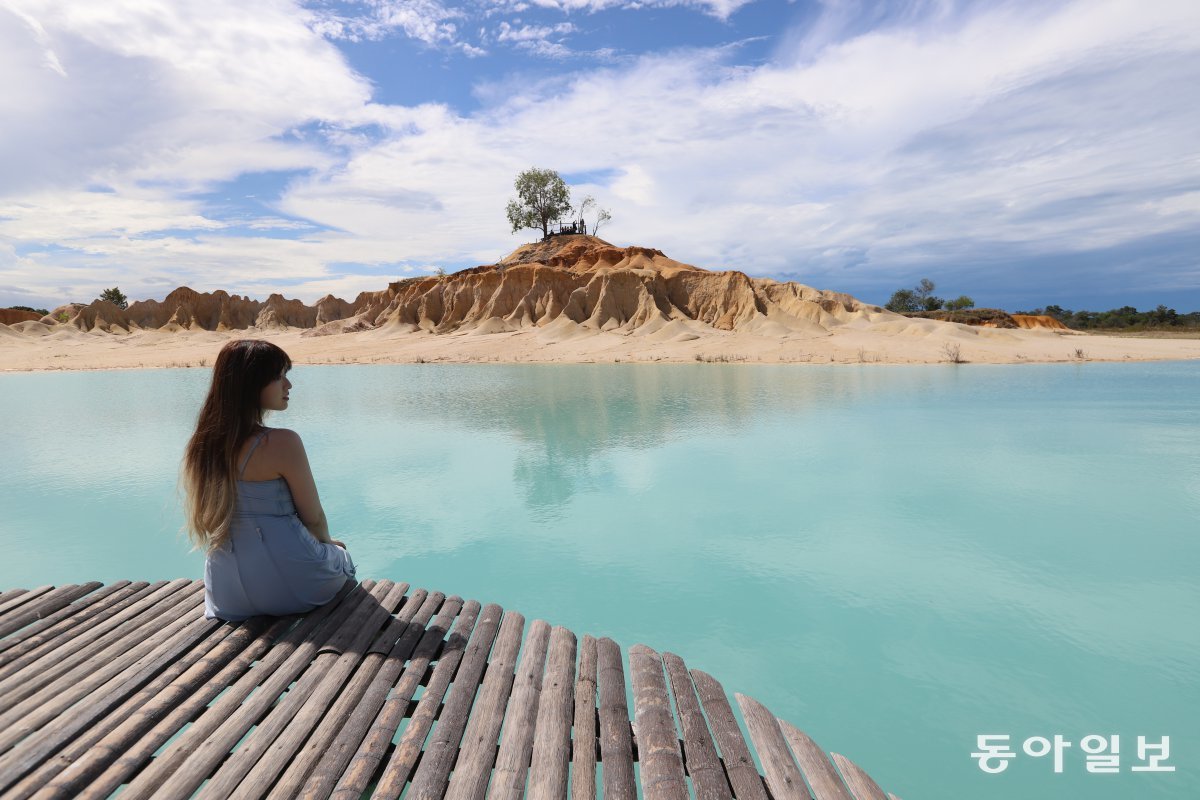 빈탄섬의 모래사막과 블루레이크.빈탄은 리조트 안에만 머물기 아쉽다. 인도네시아 뿐 아니라 인근의 말레시아, 식민지배를 했던 네덜란드, 이웃의 싱가포르까지 다양한 문화가 섞인 섬이기 때문이다. 그 중에서 ‘샌듄 블루 레이크(Blue Lake)’는 남미 볼리비아에 있는 소금사막을 연상케한다고 해서 ‘빈탄의 우유니’로 불리는 곳이다.
