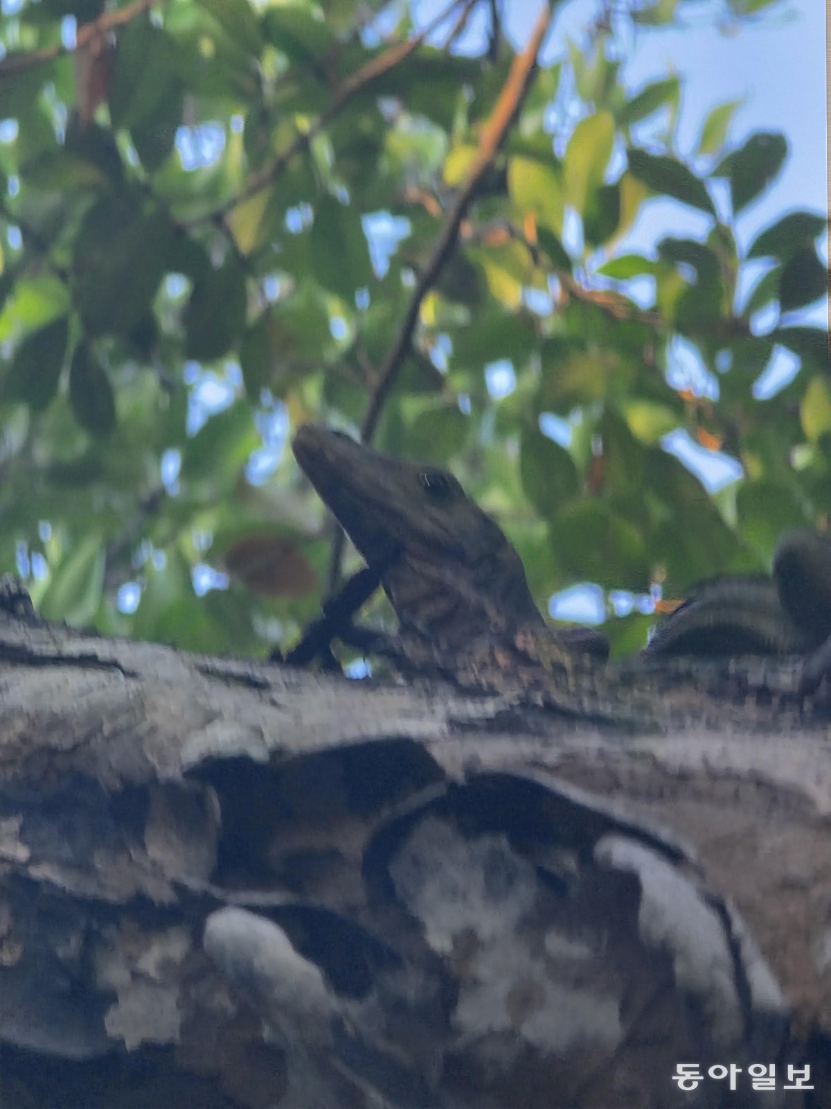 빈탄리조트 맹그로브숲을 탐사하는 보트투어.앞서 가던 보트에서 가이드가 배를 멈추더니 손가락으로 나무 위를 가리킨다. 가지 위에 왕도마뱀 한 마리가 앉아 있다. 맹그로브 왕도마뱀은 크기가 1.5m까지 자라며, 헤엄도 치고, 나무에 기어오를 수도 있다고 한다.