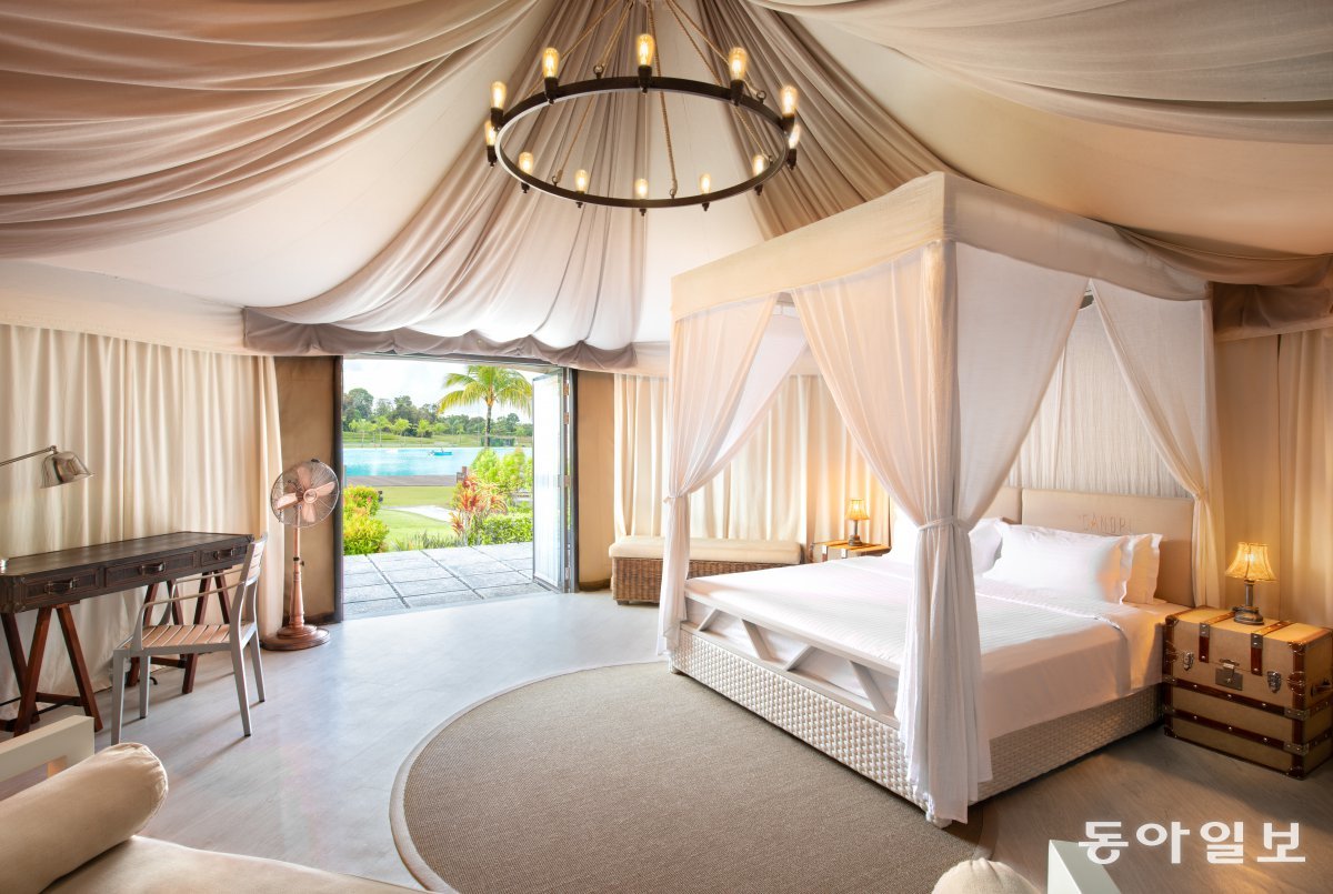 트레저베이 주변에 있는 나트라 빈탄(Natra Bintan) 리조트에는 100여개의 독채 글램핑 숙소가 있어 크리스탈 라군을 바라보며 캠핑하는 이색 체험을 할 수 있다.
