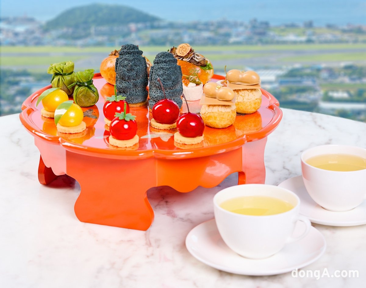 하이티 세트는 시금치 크레페와 말린 대추 고명을 얹은 불고기 미니번 등 한국의 맛을 경험할 수 있는 세이보리 3종, 제주를 상징하는 돌하르방 케이크, 망고, 딸기, 체리 돔 등이 조합돼 시각적 즐거움까지 고려했다. 여기에 테라로사 커피 또는 고급 티 2잔이 함께 제공된다.