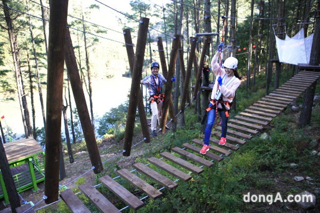 대자연 속에서 모험을 즐기고 싶다면 에코어드벤처도 주목할 만하다. 나무와 나무 사이를 그물, 목재 구조물, 로프 등으로 연결한 공중 레포츠다. 숲을 훼손하지 않는 친환경 방식으로 조성됐다. 난이도에 따라 어린이, 청소년, 성인 코스로 구성돼 연령대에 맞춰 이용할 수 있다. 자연 속에서 온몸을 움직이면서 성취감과 활력을 동시에 느낄 수 있어 가족 단위 여행객들에게 인기가 높다.