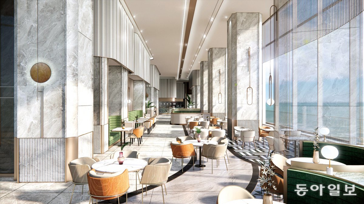 리스토란테 셰프스 키친.호텔 객실은 단층, 복층, 루프탑, 개별 풀, 펫 프렌들리(반려동물 친화)를 비롯한 16개 타입으로 이뤄졌다. 침대 소파 같은 가구는 반짝이는 잔물결처럼 모서리가 부드럽게 휘어져 안정감을 준다. 실내 색조도 바다색이 가미돼 청정한 느낌을 풍긴다.