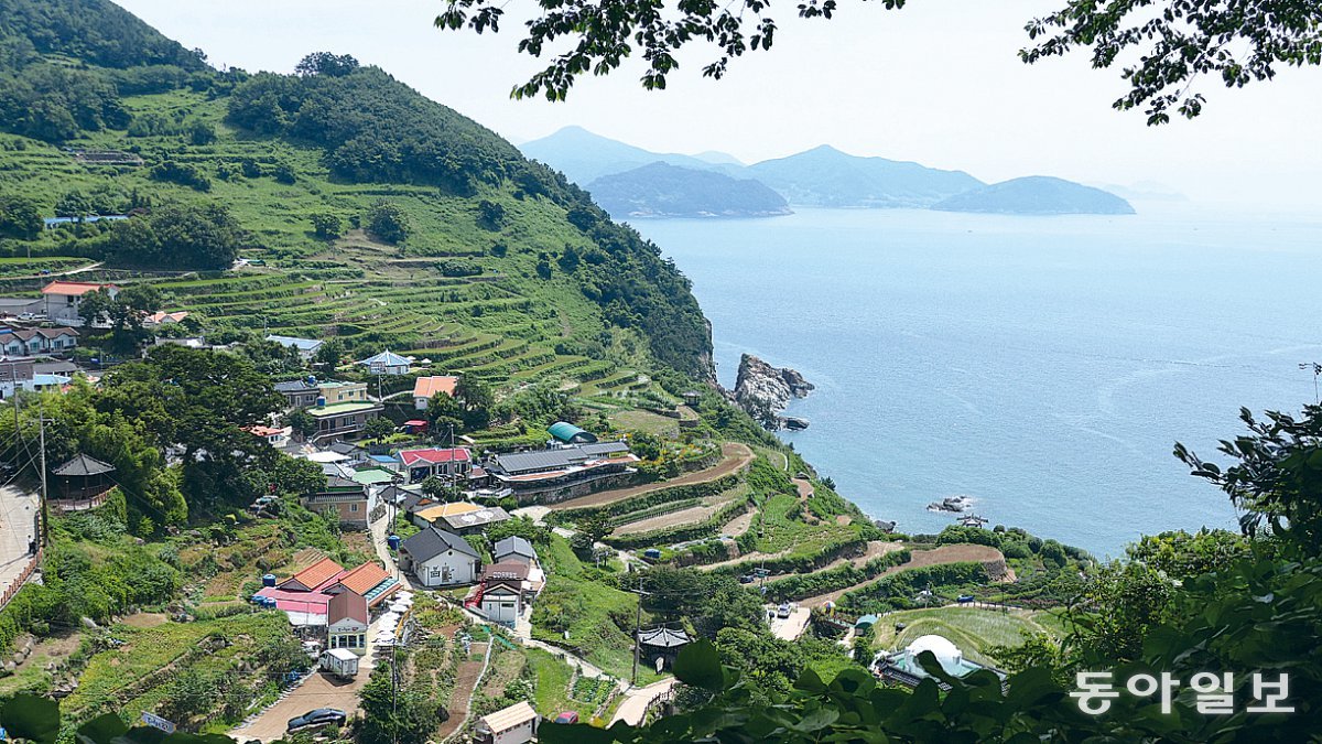 쏠비치 남해에서 앵강만 해안도로를 따라 서쪽으로 50분가량 차를 타고 가면 나오는 ‘가천 다랑이 논 마을’ 전경.