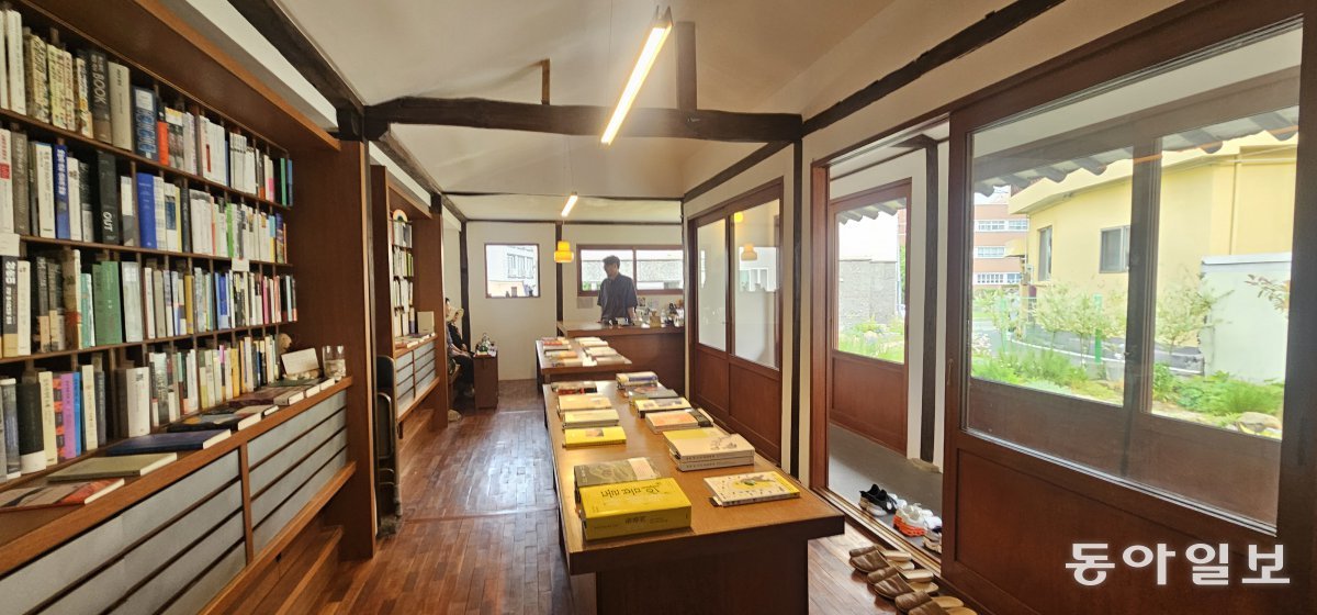 남해의 한옥카페 겸 독립서점인 ‘흙기와’. 남해=김선미 기자 kimsunmi@donga.com경남도립남해대학 후문에서 100m쯤 떨어진 주택가에는 한옥 카페 겸 독립서점 ‘흙기와’가 있었다. 건축가 지인(문주원 산토건축 소장)은 말했다. “고요하게 차 마시고 책 읽고 싶을 때 가는 곳이에요. 정원 옆 화장실을 꼭 가 보세요.” 한옥에 딸린 작은 정원에는 잔잔한 꽃들이 심어 있어 꼿꼿이 선 보라색 버들마편초가 유독 큰 키로 보였다. 화장실에 가 보니 손 닦는 용도로 날마다 빨아 쓴다는 작은 행주가 놓여 있었다. 환경에 대한 배려가 고맙게 느껴졌다.