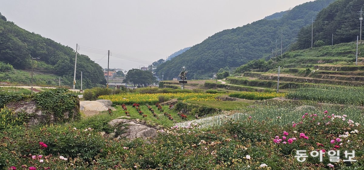 올해 4월 남해 두모마을에 문을 연 ‘파라다랑스’. 남해=김선미 기자 kimsunmi@donga.com남해군은 농로가 좁은 다랑논에서 농사를 짓기 어렵다고 판단해 관광 명소화 사업에 나섰다. 그래서 올해 4월 문을 연 게 ‘파라다랑스’다. ‘파라다이스(paradise)’와 전통 농업을 상징하는 다랑논의 합성어로 남해군이 조성하고 두모마을 주민들이 함께 운영하는 마을 공동체 기반 정원이다. 다랑논을 멋진 모델들이 줄을 지어 걷는 것을 상상해 봤다. 세계적 패션 브랜드들이 남해 다랑논에서 패션쇼를 연다면 얼마나 근사할까.