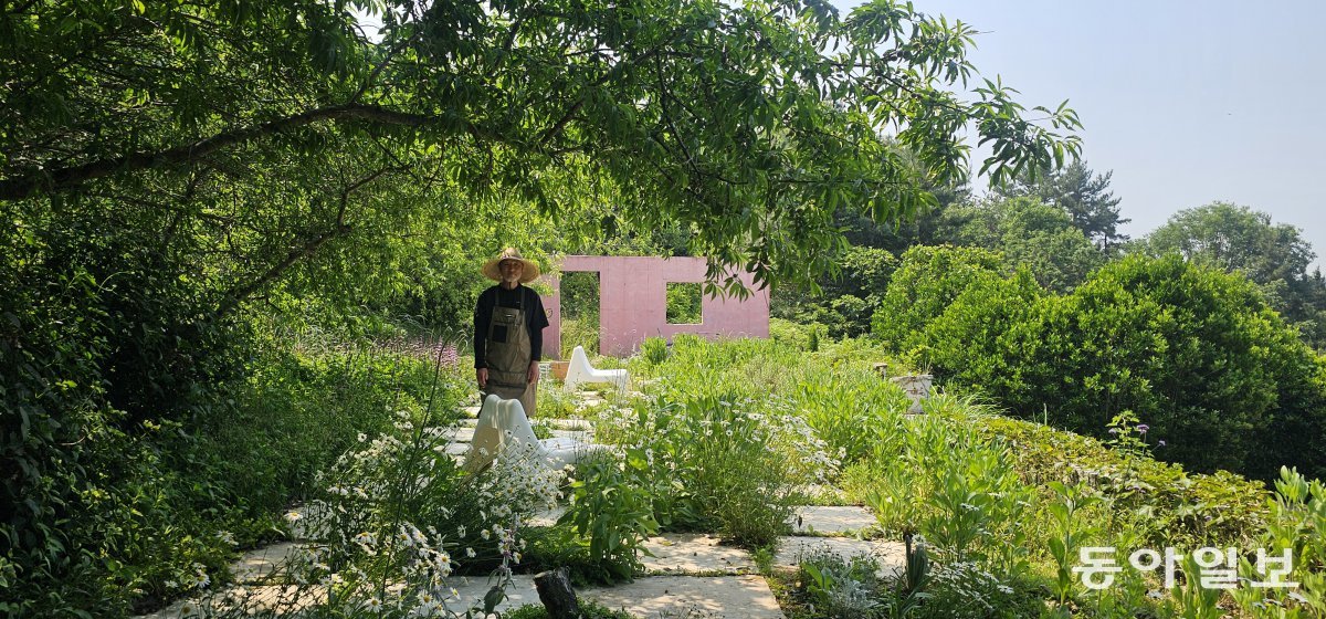 섬이정원을 가꾼 차명호 대표. 남해=김선미 기자 kimsunmi@donga.com그의 정원은 구불구불한 길을 따라 걷다 보면 계속 새로운 세계가 열린다. 은목서와 후피향나무 같은 난대 수종들이 수벽(樹壁)을 만들어 각 정원이 마법의 방 같다. 모네 정원, 하늘연못 정원, 물고기 정원…. 숲속 오두막, 뾰족 지붕 유리 온실, 빨간색 공중전화 부스까지 만나면 다음엔 또 뭐가 나올까 궁금해진다. 차 대표가 “진짜 비밀의 공간을 알려드릴까요?”라며 3분여 차를 몰고 안내한 곳은 인근 편의점. 은청색 망망대해와 초록의 남해바래길을 내려다보며 먹는 메로나 아이스크림이 꿀맛이었다.