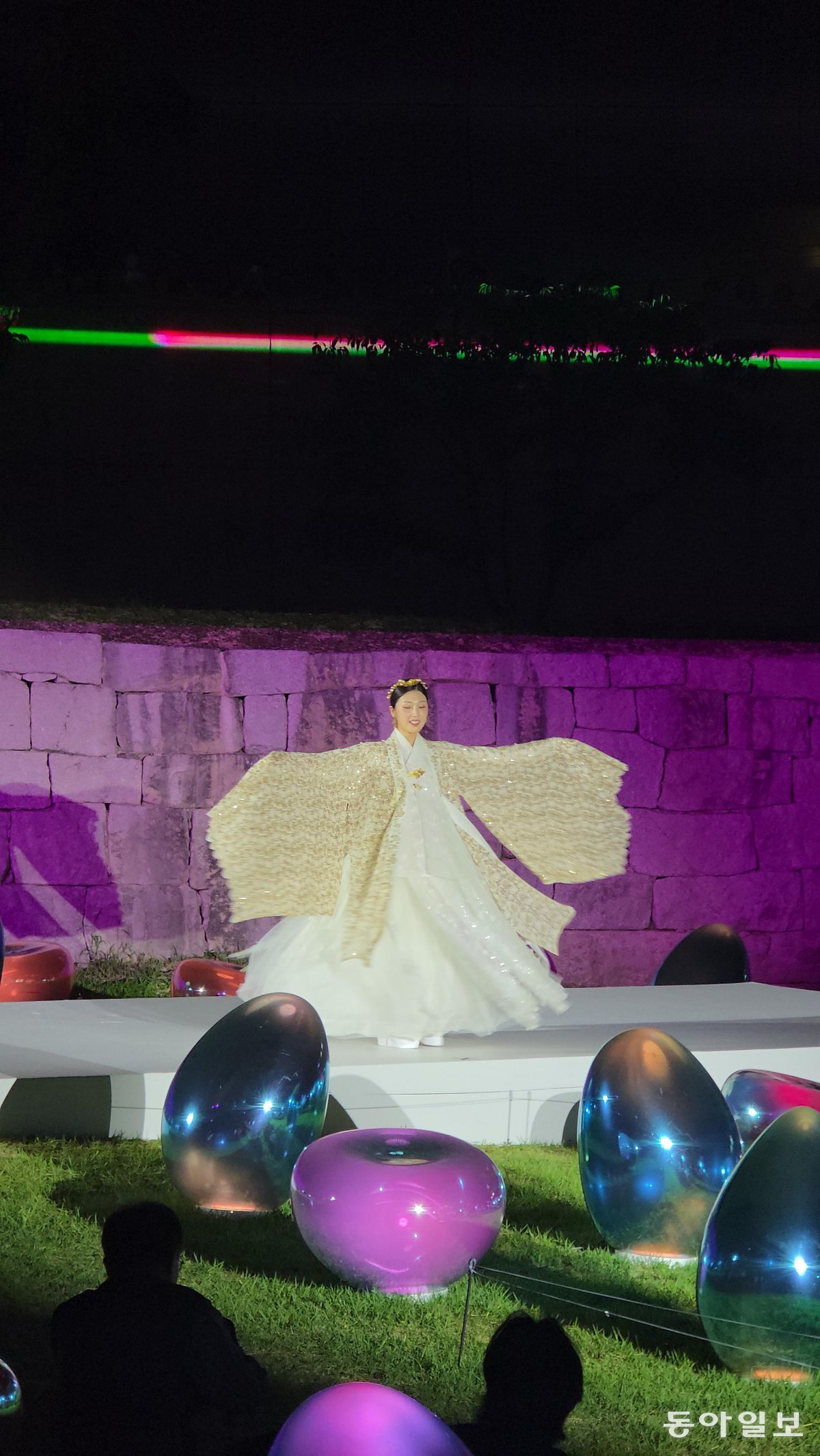 7월31일 밤, 오간수문 윗쪽 한양도성 앞마당에서는 특별한 개막식 퍼포먼스가 열렸습니다. 초승달이 수줍게 떠 있는 하늘 아래 한복 패션쇼가 펼쳐진 것입니다.
