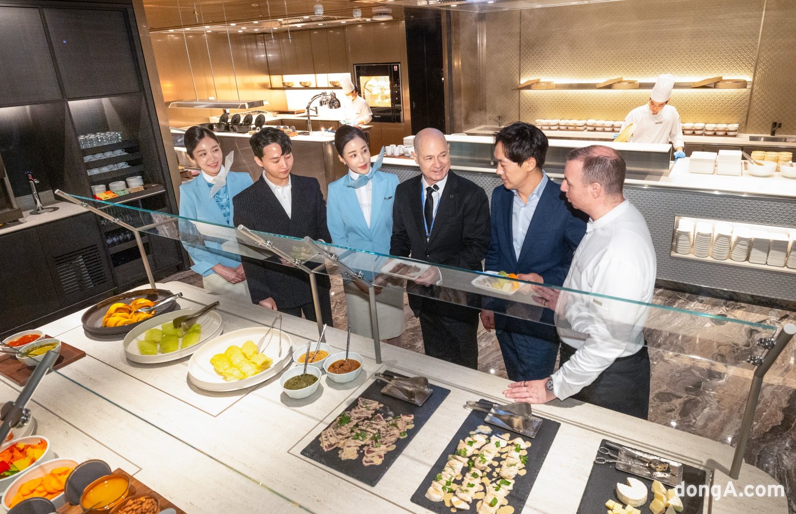 데이빗 페이시(David Pacey) 대한항공 기내식기판 및 라운지 부문 부사장(왼쪽에서 4번째)이 공항 라운지 리뉴얼 사전 공개행사에서 직원들과 기념촬영을 하고 있다.이러한 소비자 니즈에 맞춰 대한항공은 오픈키친 라이브스테이션과 함께 5성급 호텔 셰프를 공항 라운지에 투입하기로 했다. 해외 공항 라운지에서도 오픈형 음료 및 주류바는 쉽게 볼 수 있지만 오픈키친 방식은 흔하지 않다. 공항 라운지 분야에서 획기적인 시도로 볼 수 있다.