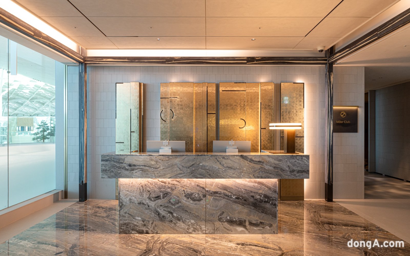 대한항공 인천국제공항 마일러클럽 라운지 입구라운지 인테리어도 최신 브랜드 철학에 맞춰 변경됐다. 한국의 미를 살린 최고급 인테리어를 적용했다고 대한항공은 강조했다. 골드와 차콜, 블랙, 아이보리 등을 조합해 대한항공 상위클래스 기내 분위기와 통일감을 유지했다고 한다. 한옥 기둥 등 전통 소재에서 영감을 받은 구조물도 적용됐고 금속을 포함한 다양한 소재를 활용해 감각적인 분위기를 살렸다. 라운지 테이블은 고급 원목과 대리석을 사용했고 실내조명은 따듯하고 아늑한 분위기를 구현하도록 했다. 글로벌 호텔 체인 포시즌스 서울을 비롯해 아시아·태평양 지역 5성급 호텔 내부 디자인을 맡은 업체와 협업해 라운지 인테리어를 완성했다고 한다. 하늘 위 구름을 연상시키는 사진과 디지털아트 등 예술작품을 설치해 볼거리도 제공하도록 했다.