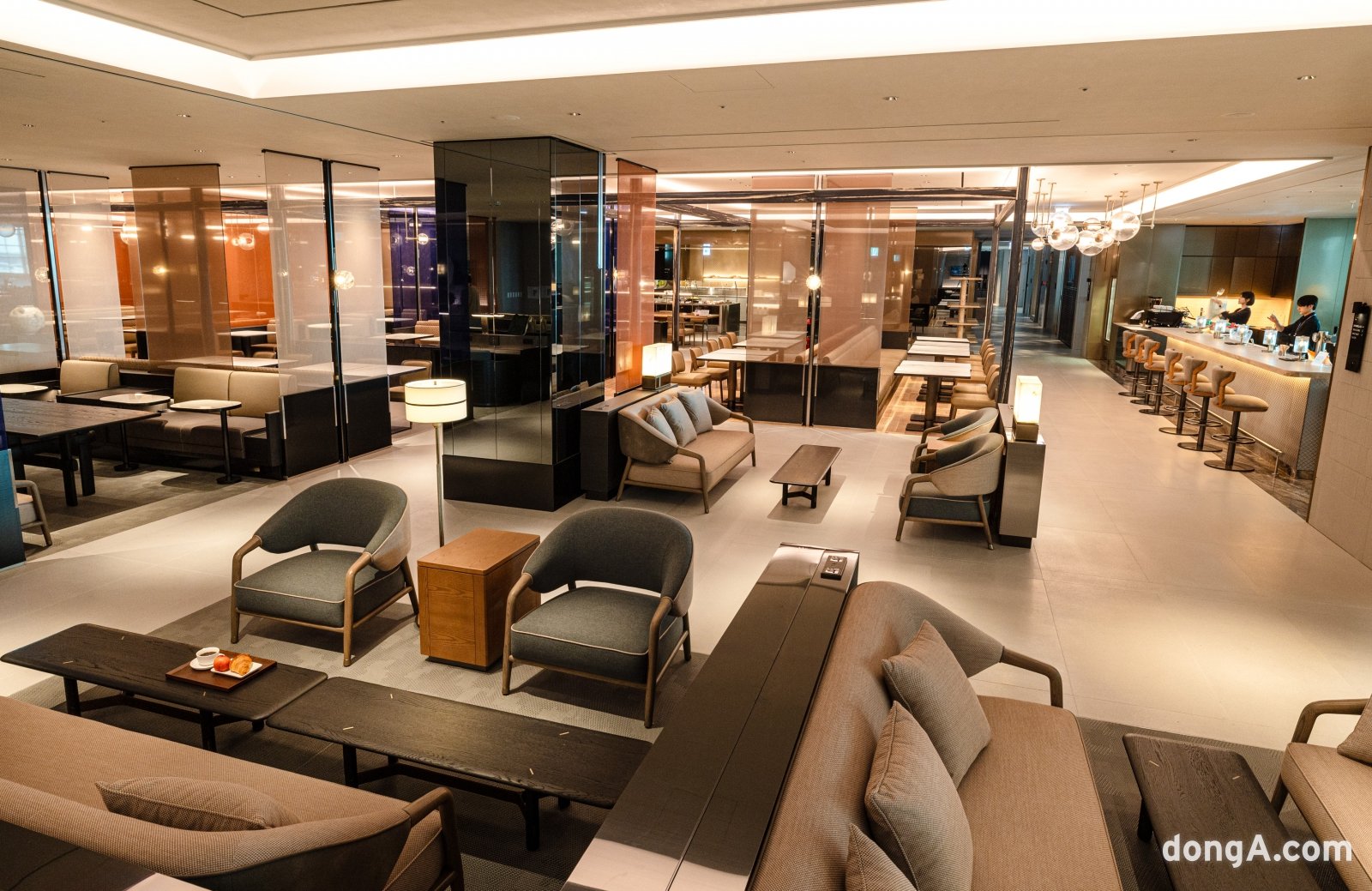 대한항공 인천국제공항 마일러클럽 라운지 오픈키친 라이브스테이션대한항공 관계자는 “항공기 탑승 전부터 승객들이 럭셔리한 여행경험을 시작할 수 있도록 공항 라운지를 하이엔드 공간으로 꾸몄다”며 “입구에 들어서는 순간부터 고급스러운 호텔 로비에 도착한 느낌을 경험할 수 있도록 했다”고 설명했다.