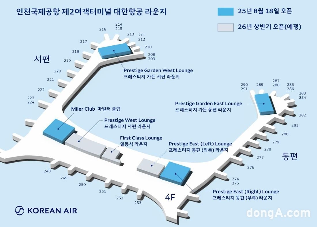 대한항공은 인천국제공항 4단계 확장 공사에 맞춰 신설된 동·서편 윙팁구역에 프레스티지 가든라운지를 새롭게 운영한다고 밝혔다. 해당 신설 라운지도 오는 18일 정식 개장한다.프레스티지 가든라운지는 모던한 분위기 속 심플한 공간을 콘셉트로 운영된다. 샐러드바와 한식, 양식, 베이커리 등이 제공된다. 특히 라운지 위치상 공항 전망을 활용한 공간으로 ‘전망 맛집’ 라운지로 볼 수 있다고 대한항공 측은 설명했다. 동편 가든라운지에서는 한국 전통 정원을 구현한 실외 정원을 내다볼 수 있고 서편 가든라운지에서는 서양식 가든을 감상할 수 있도록 했다.