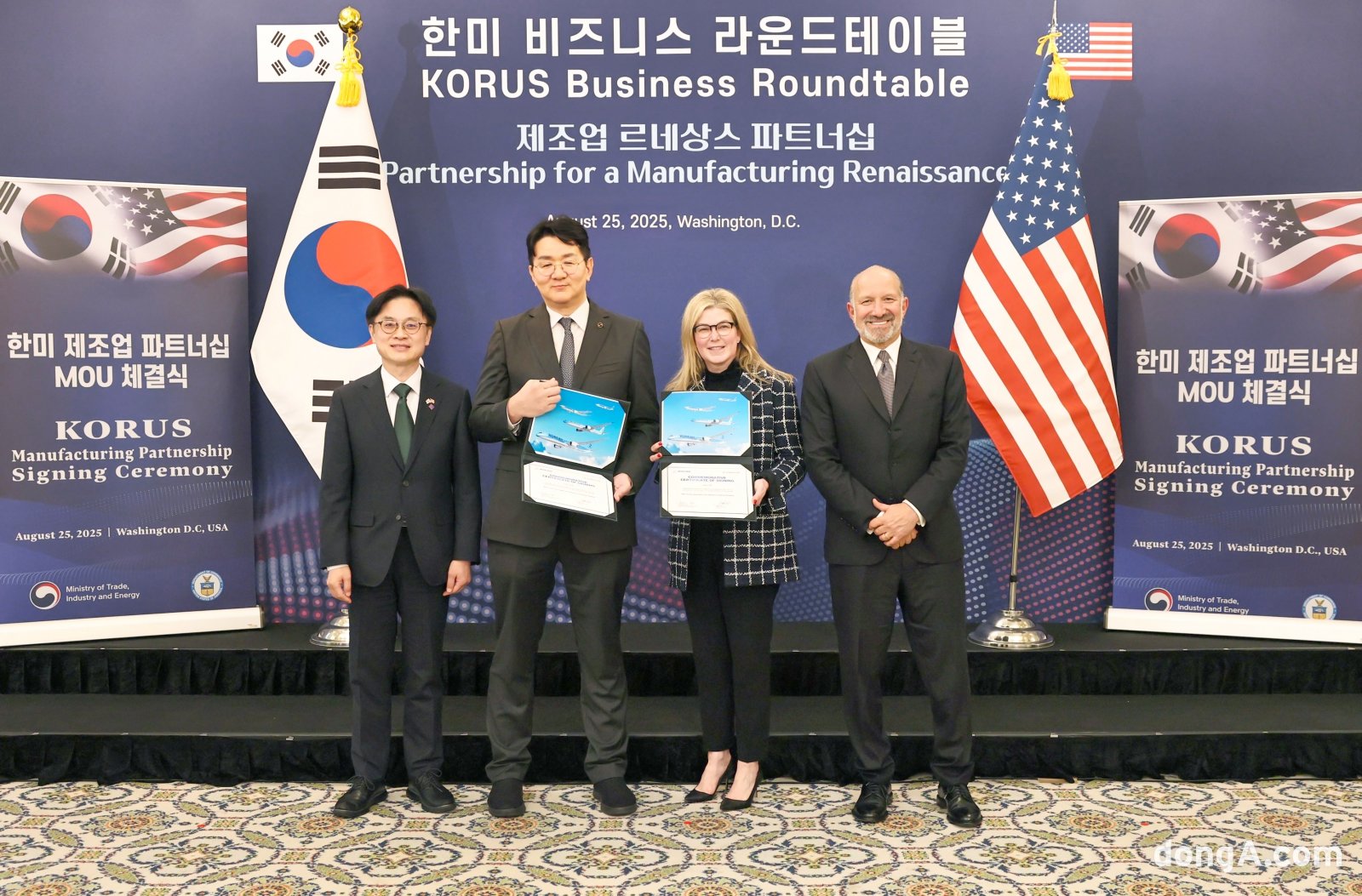 (왼쪽부터) 김정관 산업통상자원부장관, 조원태 한진그룹 회장, 스테파니 포프(Stephanie Pope) 보잉 상용기부문 사장 겸 최고경영자, 하워드 러트닉(Howard Lutnick) 미국 상무부 장관 등이 양해각서를 체결하고 기념 촬영을 하고 있다.이번 한·미 정상회담 경제사절단에 합류한 대한항공이 약 70조 원을 투자해 미국 보잉 항공기와 GE에어로스페이스 엔진(정비 서비스 포함)을 도입하기로 했다. 대규모 투자를 통해 미래 동력을 확보하고 대한민국과 미국 양국간 협력에 기여한다는 방침이다.