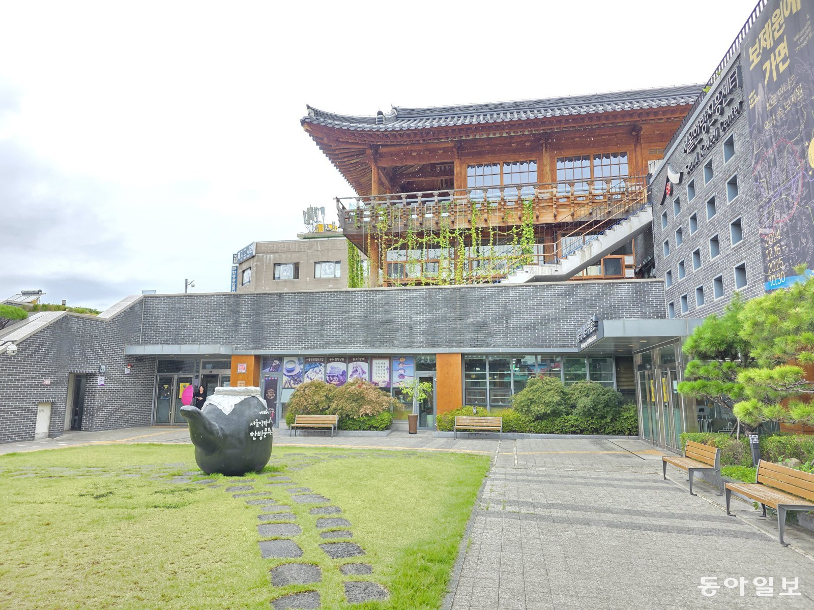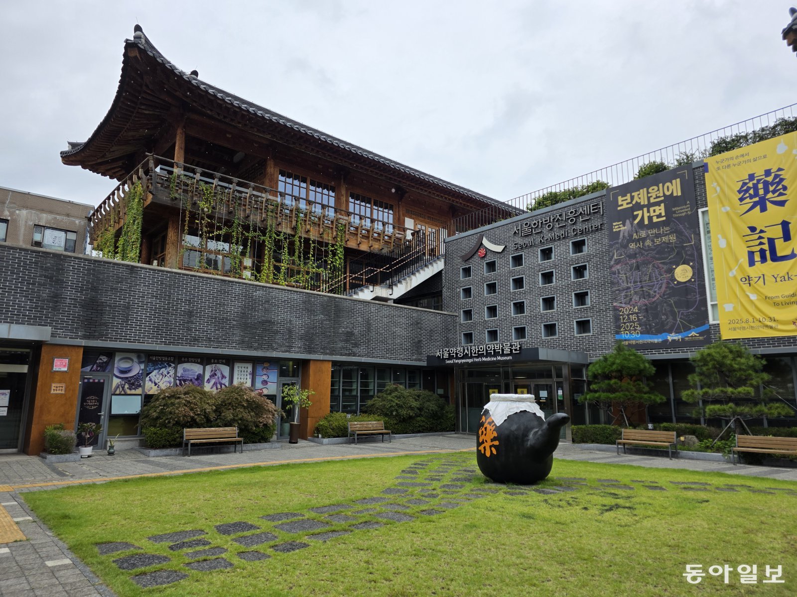 케데헌 속 ‘HAN의원’ 건물의 실제 모델이었던 서울 동대문구 제기동 서울한방진흥센터. 전승훈 기자 raphy@donga.com조선 시대 백성을 구휼하고 진료한 보제원(普濟院) 터에 지은 한방진흥센터은 벽돌 콘크리트 건물이 목조 한옥을 이고 있는 모습인데 케데헌 속 HAN의원과 흡사하다.