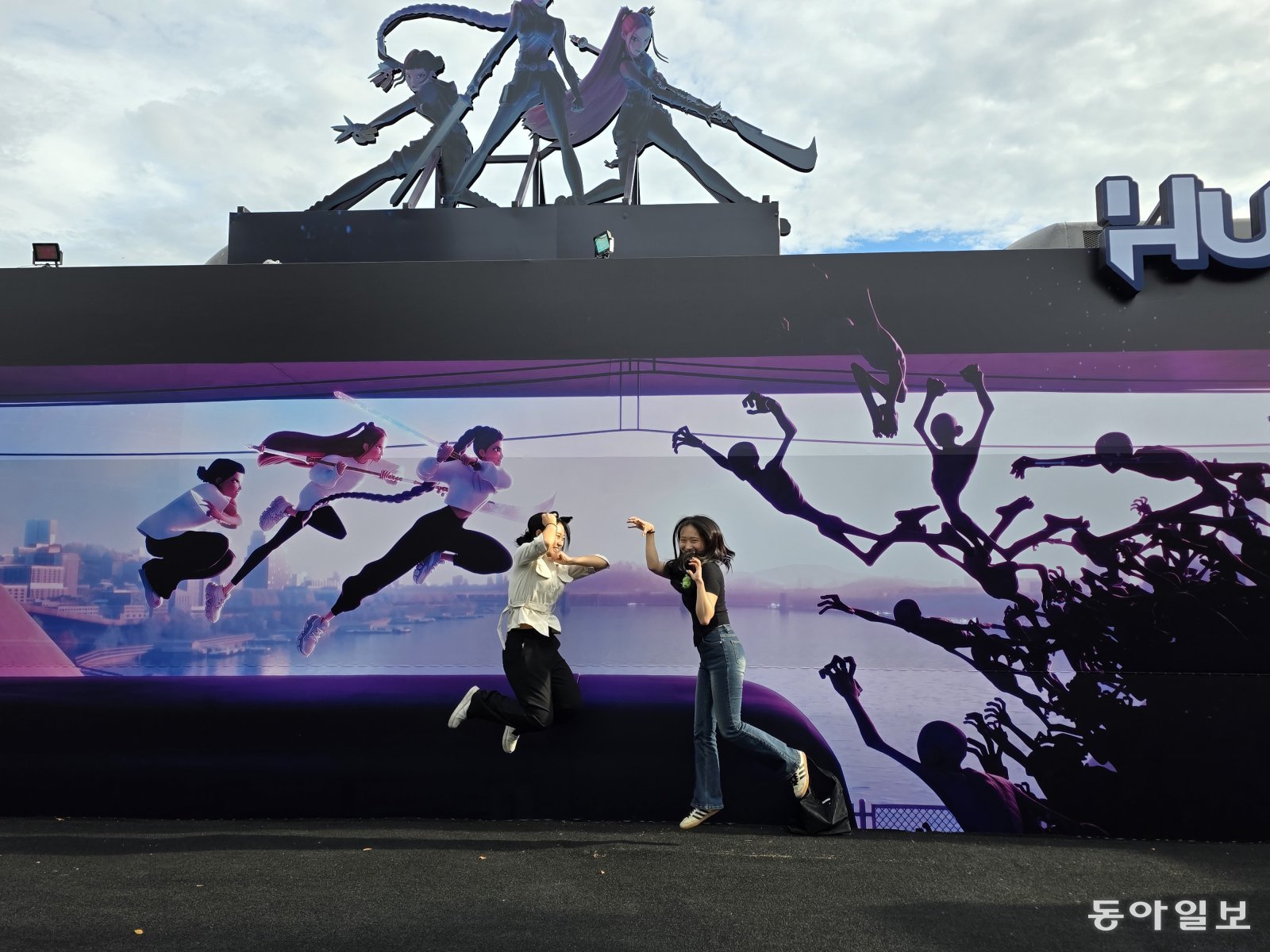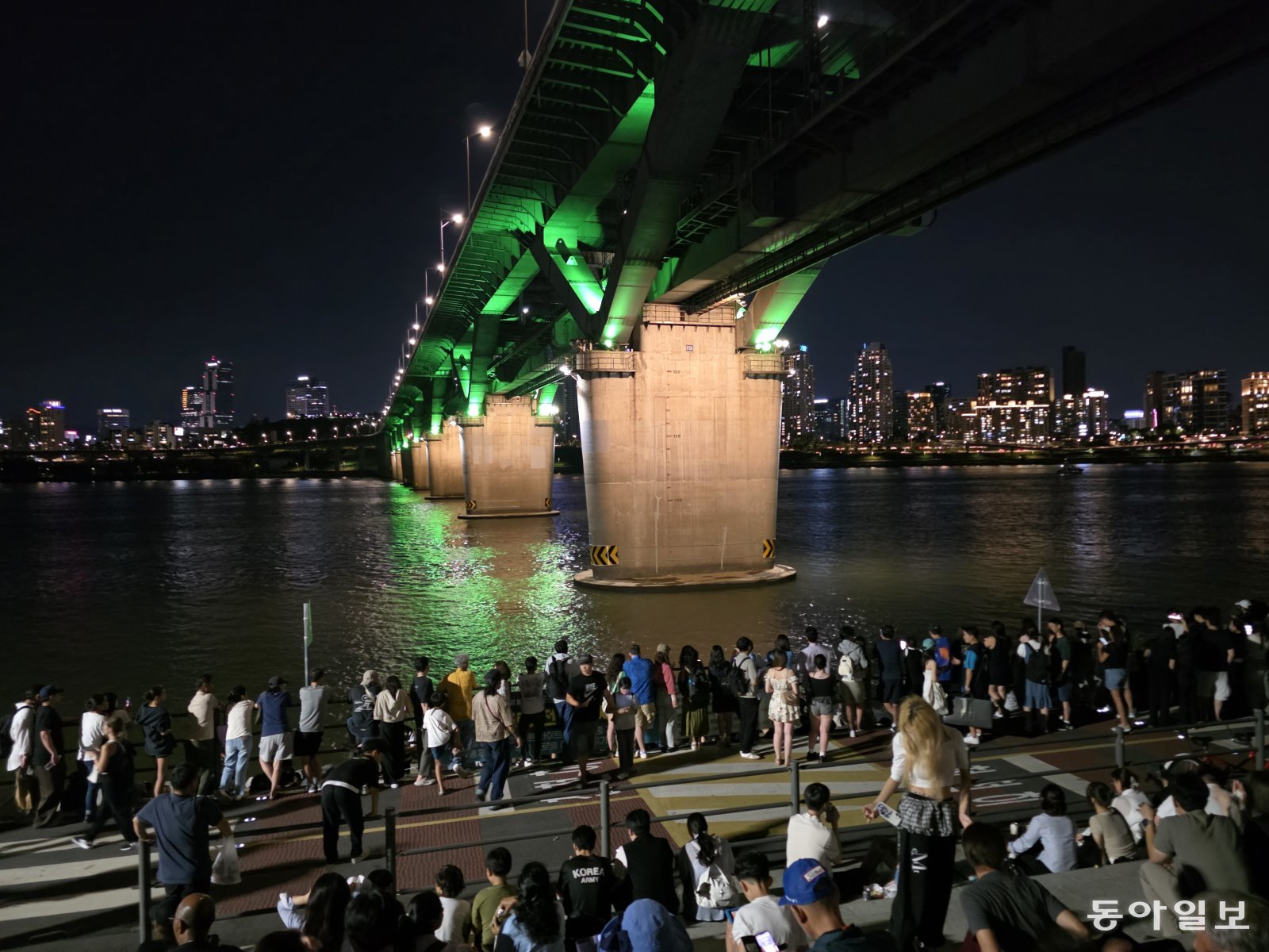 지난 14일 서울 광진구 뚝섬한강공원에서 열린 서울드론라이트쇼. 전승훈기자 raphy@donga.com평일에도 많은 외국인이 뚝섬한강공원을 찾는다. 국내 유일 복층 교량인 청담대교는 케데헌에서 헌트릭스 3명이 지하철을 타고 악귀들과 싸우던 장소다.