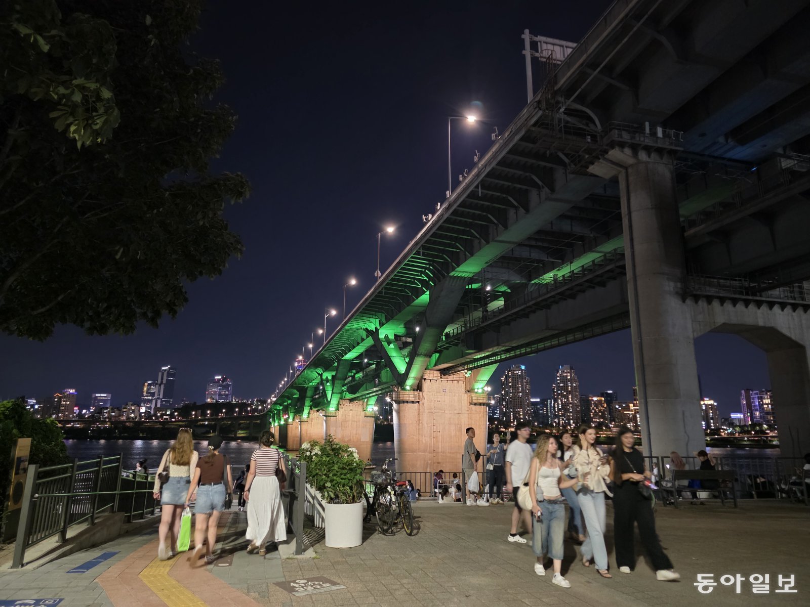 뚝섬한강공원 청담대교 앞에 외국인 관광객들. 전승훈 기자 raphy@donga.com관광객들은 청담대교 아래 한강 둔치 계단에 앉아 지하철이 위로 지나갈 때마다 휴대전화를 치켜들고 사진을 찍었다.