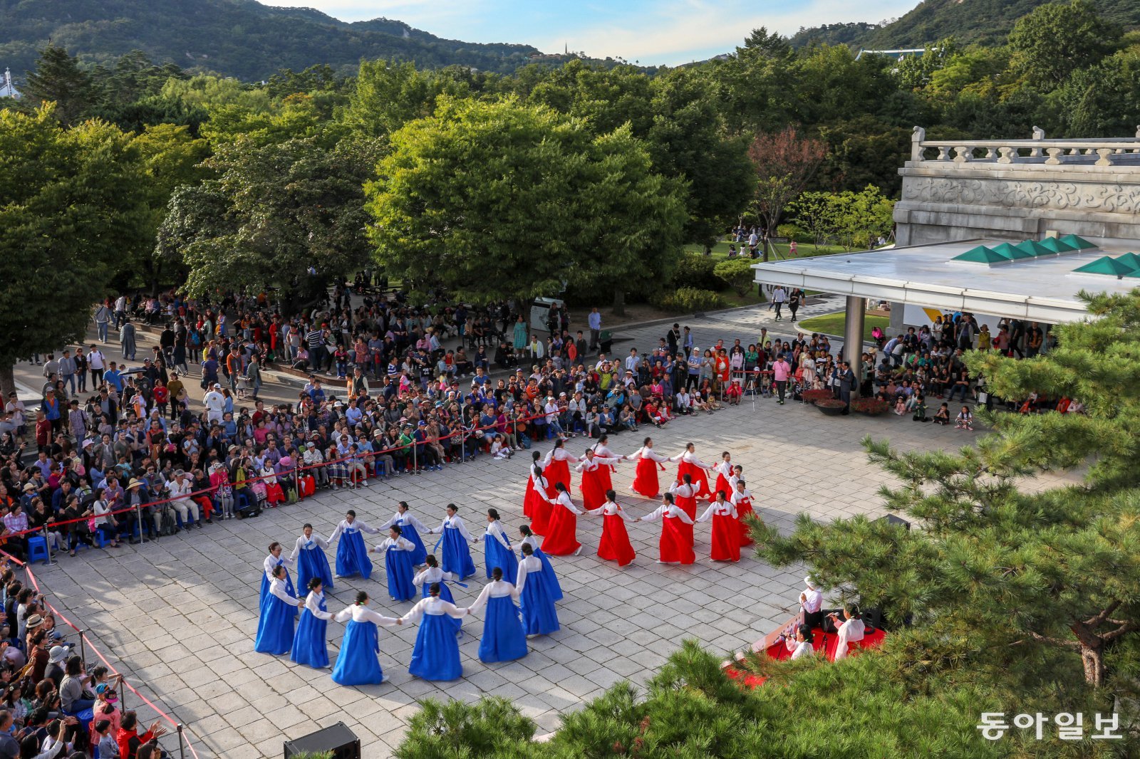 5일 서울 종로구 국립민속박물관 본관 앞마당에서는 시민들도 함께 강강술래에 참여해볼 수 있다. 국립민속박물관 제공.현재 대한민국역사박물관에서는 광복 80주년을 맞아 태극기의 역사와 의미를 짚은 특별전 ‘태극기 함께 해온 나날들’이, 국립고궁박물관에서는 과거 창덕궁 내전(內殿)을 장식했던 국가등록문화유산 벽화 6점이 모인 ‘창덕궁의 근사(謹寫)한 벽화’가 열리고 있다.